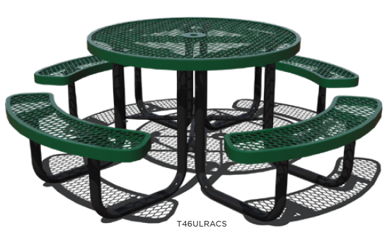 46″ round table top featuring standard umbrella hole